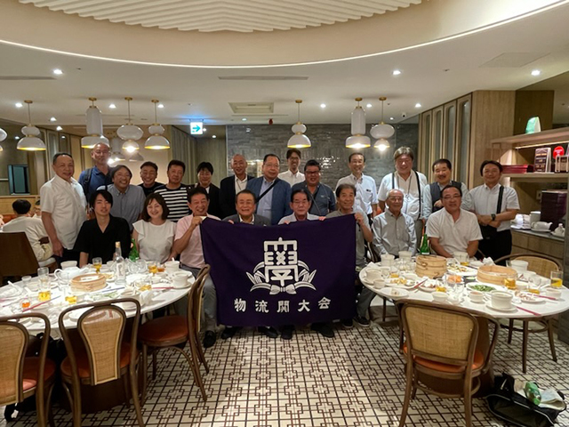 物流関大会(会長:センコーホールディングス福田泰久社長)は7月20日~24日の4泊5日の行程で台湾(高雄・台北)を訪れた。先入り、関空発、成田発、上海発、旅中参加者を含め22人での視察団である。関空発の14人は10時集合であったが、全員時間前には早々と搭乗手続きを終え、定刻12:10発のエバー航空機(BR181便)に乗り込んだ。日本と台湾の時差は1時間。気候は日本も猛暑であり、台湾も同じくらいの暑さであまり温度差を感じない。現地時間14:30に高雄空港に到着した。高雄空港では先着されていた福島からお越しの松永様とご子息及び社員の大隅様の出迎えを受け、バスに乗り込み宿泊先の高雄グランドハイライホテルに到着。高雄グランドハイライホテルは現地では「漢来大飯店」と呼ばれ1,2を争う高級ホテルであるとの事。その後1時間後に成田発の福田会長以下3人と上海発の松田様もホテルに到着。しばし自室で休憩の後、午後6時にホテル10階の「紅陶上海湯包」レストランに全員集合。結団式と懇親夕食会に移った。