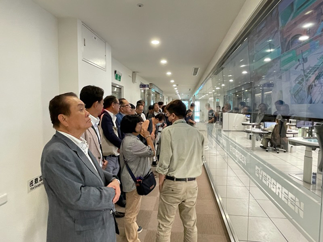 3日目の22日はヤンミンターミナルの港湾施設見学に出かけた。エバー海運(長栄海運)の7号ターミナル見学であるが広大な敷地にある港湾施設である。一行は説明会場へ案内され、YouTube映像を説明と共に鑑賞した。膨大な数のコンテナは貨物船からの降ろし、トレーラートラックへの積み込み作業は全てコンピューター制御されオペレーションセンターで管理されており、人力による荷役作業は行われていないハイテク設備であった。昼食は「高雄輸品ホテル港都茶樓」にて飲茶料理であった。台湾の飲茶料理は世界的に有名で次から次へと運ばれてくる種類の違う点心で満腹になった。一行はこのあと高雄市中に向かうがベトナム同様スクーターバイクが多いのが印象的であった。高雄の左栄駅から新幹線で訪問先第2の都市である台北に向かった。台湾新幹線は日本の見慣れた新幹線であり、皆様ゴルフバッグやスーツケースを持ってグリーン車に乗り込んだ。左栄駅から台北迄は約1時間半の移動であるが、疲れた体を癒すには良い時間であった。