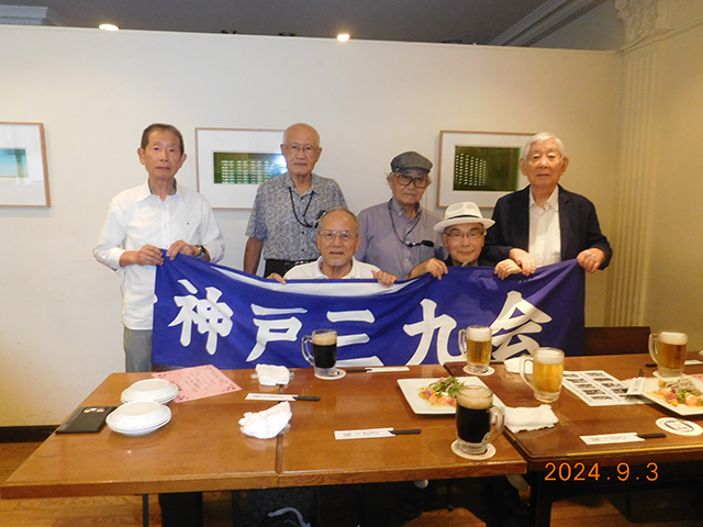 神戸三九会設立四十周年記念定例会開催 2024年09月03日 神戸三九会では9月3日(火)三宮のニューミュンヘンに於いて設立四十周年を記念して定例会を開催しました。 神戸三九会では設立以来、3月9日(総会)と9月3日(定例会)の年2回の開催、阪神淡路大震災とコロナ感染症以外休みなく母校を顧みて、夫婦同伴や一泊旅行と思い出一杯、毎回2次会では必ず学歌の斉唱で会の終了とお決まりのコースで、再会を期し終了となります。 目標の九十三歳まで頑張るぞ。