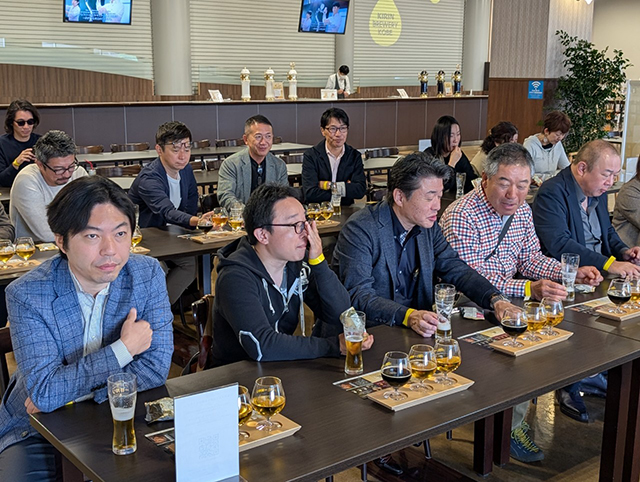 第1部は「キリンビール神戸工場見学ツアー」に参加いたしました。「キリン一番搾り」の美味しさの秘密を学ぶツアーで、セミナー形式でテイスティングの体験や工場内の見学をおこないました。最後はブルワリードラフトマスターと呼ばれる、生ビールを美味しく提供する知識と技術を習得したスタッフの方が注ぐ工場直送の生ビールを堪能し、大満足の見学会となりました。