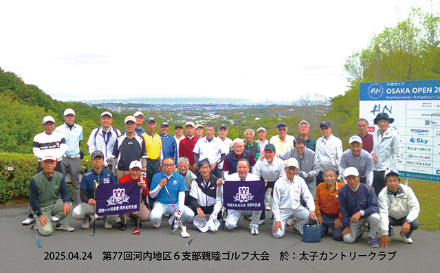 松原支部第77回河内地区6支部対抗親睦ゴルフ大会を開催 2025年04月24日 2025年4月24日、太子カントリークラブにて「第77回河内地区6支部対抗親睦ゴルフ大会」を開催しました。 松原支部 ゴルフ代表幹事 西口昌宏 090-3350-0802