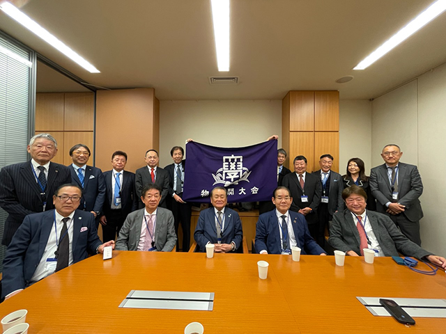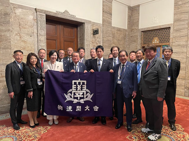 物流関大会(会長;福田泰久センコーホールディングス社長)は2月25日(水)に16名にて国会議事堂見学会を開催した。物流関大会メンバーで兵庫7区選出の三木けい衆議院議員(1990社会学部卒)より、かねてより国会議事堂及び議員会館の見学を企画頂いていたものであったが、突然の衆議院解散・総選挙になり2月8日の投開票で、メンバーの力強い応援はあるにせよ、三木けい議員の当落が気にかかる事業計画であったが、めでたく比例当選を果たされ実行できた。