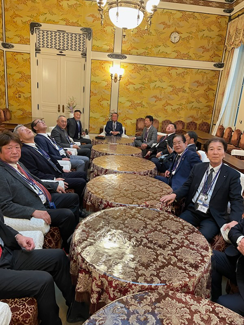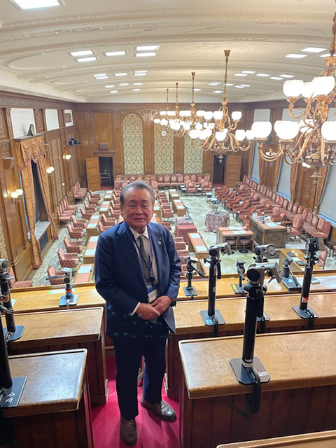 当日は12時30分に第2議員会館前に全員集合し、11階の事務所をまず訪問した。三木議員は代議士会続いて本会議があった為、秘書の渡壁氏・森山氏に案内を頂いた。議員事務所でしばし休憩、写真撮影をし、カレーライスが有名な議員食堂に移動。昼食をとり、本会議場傍聴席へ移動した。傍聴者は住所、名前、年齢を記載し、携帯電話等の金属類は全てローカーに収納し、金属探知機を通って入場する。議場全体を見下ろせる傍聴席に陣取り、高市総理の答弁を聞く事ができた。テレビでしか見ない閣僚の姿、有名議員の姿も遠くからではあるが、拝見する事ができた。