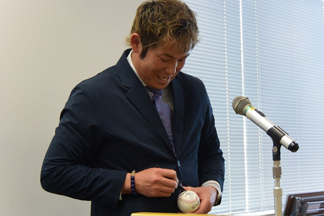 続いて総会特別企画として、校友である岩田稔さん(平18経)に「やらな、しゃーない!~逆境に負けない岩田流セルフマネジメント~」というテーマで講演をしていただきました。幼少期のエピソードから1型糖尿病の発症、高校生活、大学生活、阪神タイガース、WBC出場、引退と何度も壁にぶつかりながらも希望や夢を捨てず「やらな、しゃーない!」と奮起して乗り越えてこられたすばらしいお話でした。また講演後には、岩田さんとのジャンケンで勝った3名の方に、サインボールをプレゼントしました。