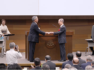 叙勲・褒章を受章された方々を代表し、関西大学名誉教授として瑞宝中綬章ご受章の筒井脩先生へ記念品を贈呈いたしました。