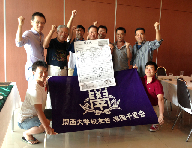 5月19日(日)、ゴルフの関西7大学対抗戦がアユタヤゴルフCCで開催され、今回は関大が2位に躍進した。関大の最優秀選手は倉田敢司(昭61学工)氏で、総出場選手60名中、総合4位と前回の憂さを晴らしてくれた。中村良三会長(昭40学工)以下他のメンバーは手堅くスコアをまとめ、15位前後が多く総合2位という好成績を収めることとなった。ちなみに優勝は関学、これで大会3連覇となった。