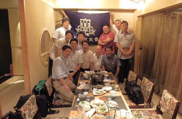 上海関大会は定例会(基本的に奇数月の第2水曜日)を7月17日(水)、11名が集まり虹橋地区の日本料理「日和」にて開催。時間が立つのも忘れ、3時間以上ワイワイガヤガヤと楽しいひと時を過ごした。なお、次回は8月23日(金)にキャリアセンター一行との親睦会(臨時関大会)を予定している。