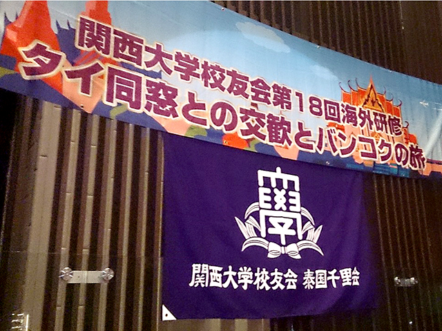 母校はバンコク市内にあるチュラロンコン大学内に「バンコクオフィス」を構えており、校友会においては泰国千里会が様々な分野でご協力をいただいている。親睦交流はもとより、母校に対する日頃のご支援への感謝と、国際化への様々な諸問題をともに語らい、未来へ続く母校の隆盛をはかっていくものである。