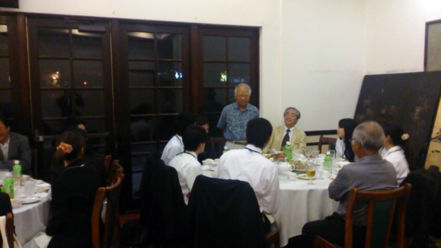 翌6日には、国際インターンシップ参加の学生とロサンゼルス千里会との交流会に参加した。校友の参加者は、南城会長、白川氏に加え、坪田昌夫氏(昭37学工)、西村常明氏(昭53学工)の計4名。前日の打合せで、校友自身も飲酒は控えて、許されるすべての時間をできるだけ学生との質問や意見交換に充てようと決め、歓談中は、各テーブルで学生にアメリカでの生活、文化からビジネスに至るまでいろいろとアドバイスいただき、また、途中で席替えをするなど配慮を加えながら進行し、それぞれの夢や目標に向かって参加した学生達は熱心に聞き入っていた。学生が宿舎に帰って後には、校友と事務職員とで反省会を兼ねて2次会へ。「交流会だけでは時間が不足し充実したものにならない」「日中にもOBと共催のプログラムを組んで、夕刻に交流会を開催するなど有効的にOBを活用してほしい」「もっと前段階から打合せが必要」「インターンシップ終了後の動向調査など検証が必要である」「部署間を越えた一体感のある取り組みをお願いしたい」など、様々な意見、提言をいただいた。