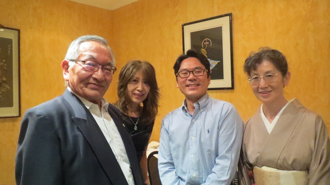 階下を貸し切った会場では、パリ関大会の方々が暖かく迎えてくださった。石井襄代表(昭44学法)と校友会長、副会長の初対面となった。昨年の例会時には石井代表は帰国中で、私も今回初めてお会いした。
