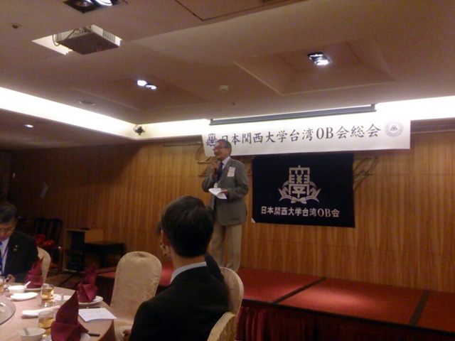 今年の総会は、毎年出席いただいている寺内校友会長や三木副会長を筆頭に9人の関大理事、職員の方にも参加いただき、また特別ゲストとして、関大の協定校である国立台湾師範大学と玄奘大学の国際交流部門責任者も招待されるという特筆すべきものであった。