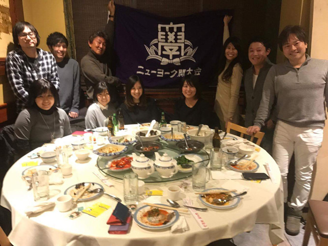 ニューヨーク関大会も設立して1年半程で、ようやく10人が集うまでの支部となりました。年齢、職業、アメリカに来た目的も様々な個性あふれる10人が母校を通して、このようにニューヨークで繋がり、世代を超えた友情を築くことができました。
