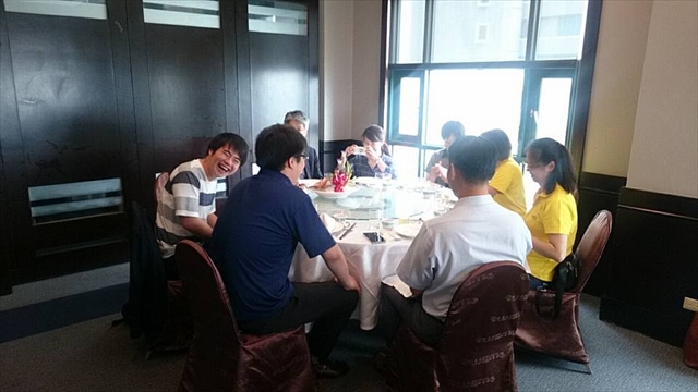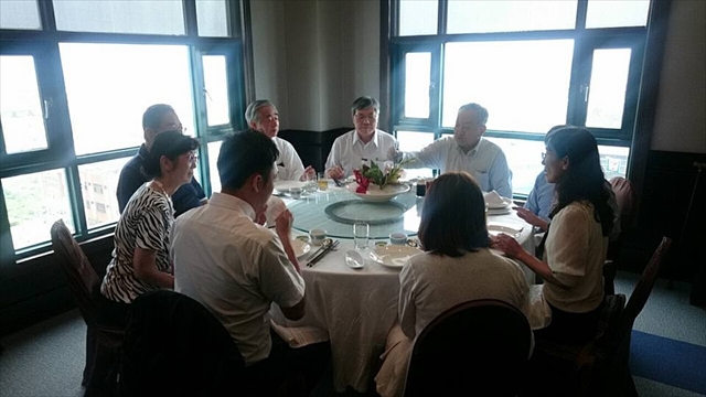 一行は、8月25日(金)に桃園国際空港に到着後、専用バスにて台中金典ホテルへ。台中の懇親会は当ホテルの15階の金園レストランで開催。母校の協定校である靜宜大学から王副學長など6人の先生方がゲストとして華を添えていただき、また留学生別科の新入生2人も参加するなど、合計30人が出席しての大交流会となりました。