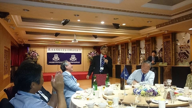 その後、一行は専用バスで台北へ。本年度の台湾OB会総会は、1970年創立の大三元広東料理にて、台湾留学生OBOG、在台日本人校友、留学生別科修了生、現役学生、新入生など総計52人の参加者を得て盛大に開催されました。台湾OB会は一般の他支部と違い、正規のOBOG以外に留学生別科修了生も含めており、今年の出席者の中には、オランダ出身で、現在台湾で英語を教える留学生別科修了生も出席しました。日本人校友とともに留学生のOBOGも一体となって活動すればこそ、このような校友会組織も他にないものと思います。