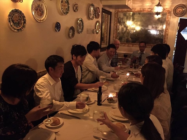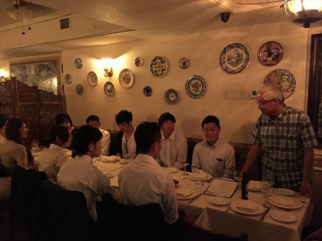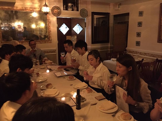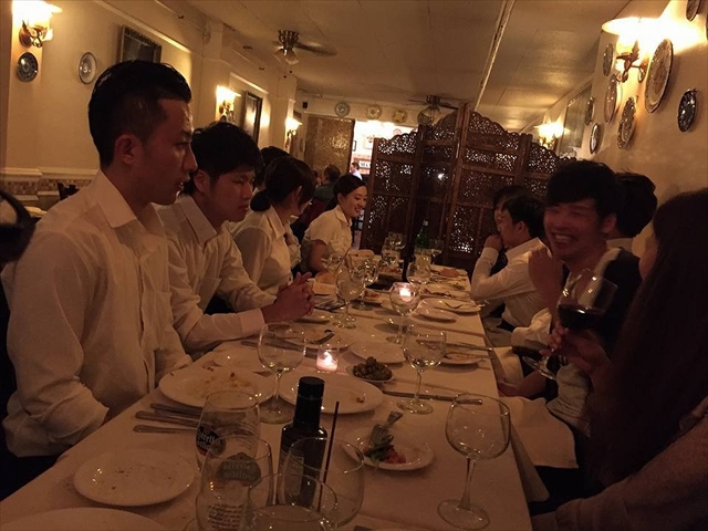 同日19時からは、スペイン料理を堪能できるレストラン「Alcala」にて、ニューヨーク関大会との交流会を開催。世界の中心とも言える大都市ニューヨークで生活され、また、学生達には近い年齢層の若い校友で構成される関大会メンバーとの交流は、学生にとって身近に感じられて気軽な、そしてニューヨークのレストランということで少しお洒落な雰囲気のなか、素敵な交流会となった。