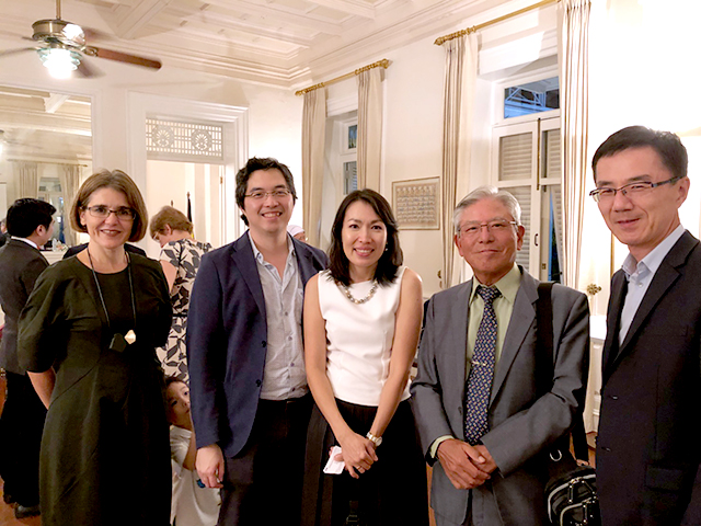 ベルギー大使公邸で開かれたこの式典には角田会長、池内副会長、宮本世話人が招待され、ルーヴェン大学学長より全参加者に壇上より紹介いただき、歓迎の拍手で迎えられました。