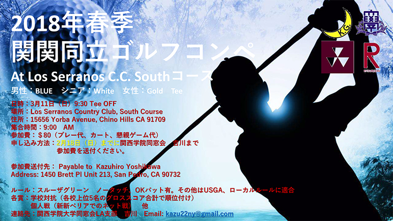 【関関同立ゴルフコンペ(3/11日曜日)のご案内】