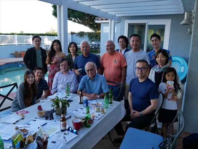 8月10日、ロサンゼルス千里会武田氏の邸宅にて15時より第一部として同窓会を開催し、18時から第二部として関西大学キャリアセンター主催の国際インターンシップ参加学生9人とキャリアセンター職員の松本さんを迎えて懇親会を開催した。