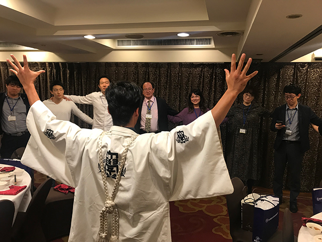 総会は、関西大学応援団部員による指揮のもと、学歌斉唱でスタート。李銘坤・台湾OB会会長の挨拶に続き、中井副会長から関西大学の近況報告等が行われた。中井氏が「最近の女子関大生の力強さ」の話に及んだ際には、会場内から一斉に笑い声が溢れた。どうやら台湾でも女子学生の活躍はめざましいようだ。