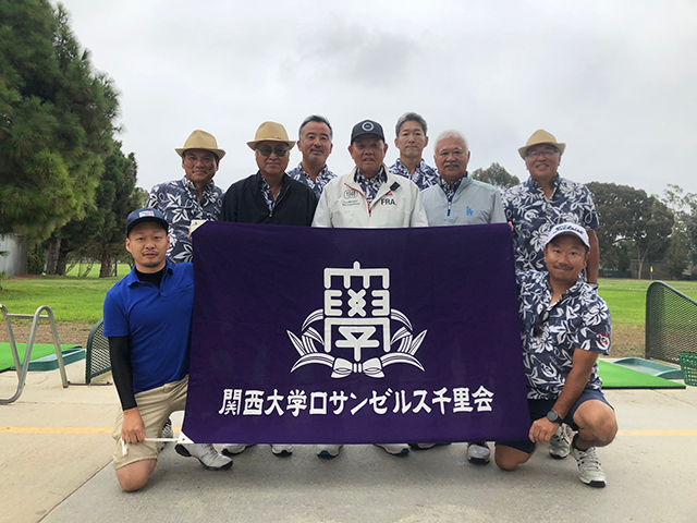 ラウンド後は、水谷忠司さん(昭42学法)の送別会。卒業後、西武運輸の海外派遣社員としてニューヨークに3年余り赴任。帰国したのも束の間、ロサンゼルス支店開設とともに再赴任、水谷さんの半生はまさに千里会の歴史そのもの。ご功労にメンバー一同、ただただ感謝申し上げます。11月には帰国され、関東方面で穏やかに過ごされる予定。一足先に帰国された元LA千里会の皆さん、近況報告やゴルフのお伴などをどうぞよろしくお願いします!