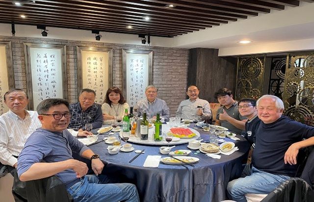 台北市内の湖南料理店、彭園湘菜レストラン(創始店)に台湾人6人、日本人3人のOBと別科在籍中の学生1人の10人が集まり、2021年最後の例会を楽しんだ。