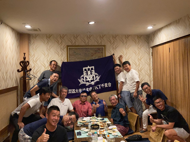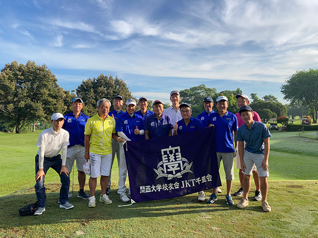 長年にわたりJKT千里会の発展拡大にご尽力いただいた松沢会長(経83年卒)が、9年強の駐在期間を満了され、ご帰任されることとなりました。そこで、ポンドックチャベGCにて送別ゴルフ会を開催、当日は快晴好天にも恵まれて13人が日頃の練習の成果を披露しました。ゴルフのあとは、インドネシア政府のコロナ対策規制緩和を受けて、鳥清にて懇親会を開催。新任会長の辻本さん(商91年卒)より新任会長就任のご挨拶、松沢会長からはありがたい人生訓となるお言葉をそれぞれいただきました。最後は学歌の大合唱で会をしめくくり、校友の懇親を心ゆくまで深めることができました。コロナ状況が収束に向かいつつあるなか、校友活動をこれからも益々積極的に行ってまいります。