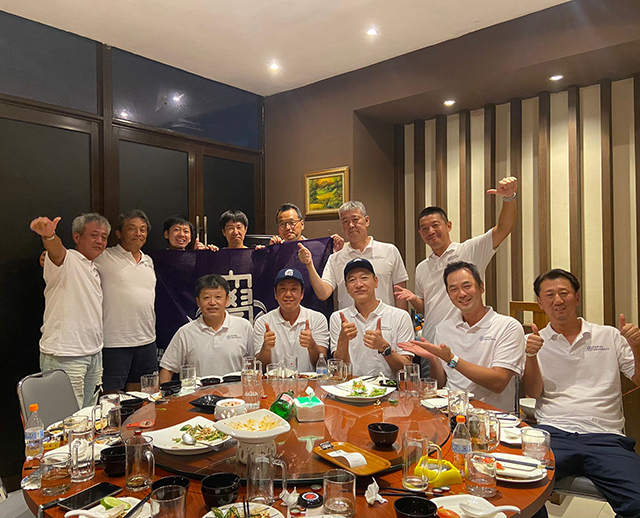 2023年新年会も兼ねた年初めのJKT千里会活動として月例ゴルフ懇親会をクダトンゴルフ&CCにて開催。気心の知れた学友同士、和気あいあいの賑やかな雰囲気のなかで皆日頃の練習成果を披露しました。ゴルフの後は、皆の大好きな中華レストラン「幸福之家中餐馆」(HAPPY HOME CHINESE RESTAURANT)に移動し、成績発表含む昼食懇親会を開催するとともに、西田さん(法89)と小山さん(商96)の壮行会を行いました。バリハイビールののどごしを楽しみつつ美味しい中華に舌鼓を打ち、会話も弾み大いに盛り上がりました。ご両名より帰任のご挨拶を頂いたのちに、恒例の学歌の斉唱を以て閉会となりました。西田さん、小山さんの新天地での益々のご発展をご祈念いたします。