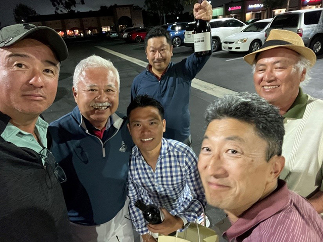新入会員の近本義人さん(平4学法)の歓迎ゴルフを"The Huntington Club"にて開催しました。昭和天皇と同日に生を受けた桝田さんの誕生日とも重なり、大勢のクラブメンバーからの祝福を共有しながらの楽しい一日でした。終了後はいきつけの日本食"割烹本多"へ。同じく新入会員の篠原謙太さん(平23学法)も参加、楽しいひと時を過ごしました。