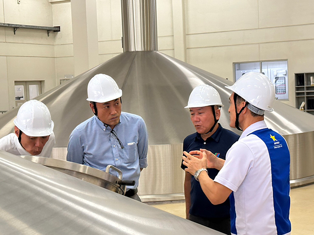 メンバーでサッポロベトナムリミテッド 代表取締役社長の臼井勝彦氏(平6学商)の関係でサッポロビール工場を見学。サッポロビールの歴史やビールについて知るとともに工場では生ビールを試飲。お店で飲むビールとは一味違う。