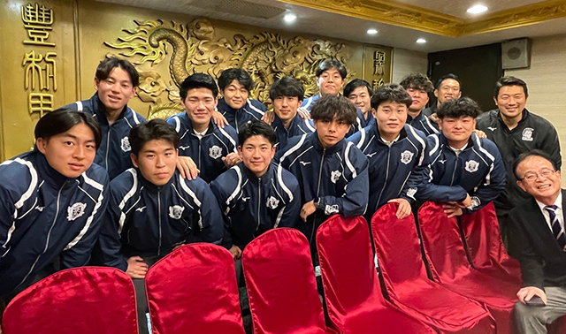 2023年第6回目の例会は12月22日、台北市の中華レストランで開かれた。今回の例会は今年創部100周年を迎えた母校ラグビー部の台湾遠征の歓迎会を兼ねたものであった。山本英一先生を団長に佐藤監督、稲山コーチ以下、スタッフ4人、学生12人が参加した。今回の例会は先月の前田学長台湾訪問歓迎会に続く2ヶ月連続の集まりでもあった。また今回の例会にはラグビー部台湾遠征を招聘した義大病院の杜元坤院長も参加され歓迎の言葉を述べられた。ラグビー部の健闘を祈り、和気あいあいのなかで記念写真の撮影であった。