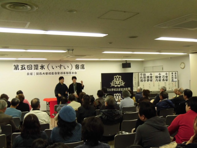 2月11日午後に宝塚商工会議所の会議室で、宝塚支部(門田安正支部長)主催「第5回葦水寄席(いすいよせ)」が開催され、近隣支部の校友のほか、地元商業者、宝塚市民ら79人が参加した。