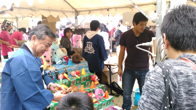 まつり開始は11時なのだが、その前から次々子供たちが覗きに来るため、少し早めに開店。心配していたお天気も、少しぱらつくぐらい。いつものように行列ができるが、レイアウト変更の効果か、他のブースにご迷惑かけることなく、来店者をさばくことができた。因みに来場者は1200人余り。閉店時間になっても、まだ来店してくれる親子連れも。7時撤収後、頑張ってくれた学生たちの慰労も兼ね打ち上げを行った。