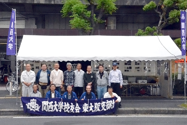 「第41回東大阪市民ふれあい祭り」が5月13日に開催され、東大阪支部(松葉健一支部長)は、社会連携事業として「関大校友会サロン」を近鉄奈良線・河内永和駅北側の「ふれあい通り」に出店した。