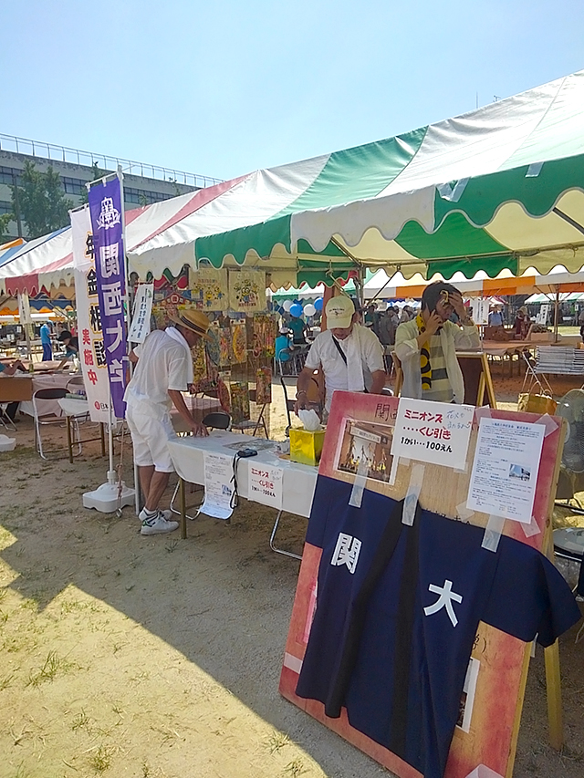 今回は、猛暑の中、神藤支部長をはじめとする東成支部役員で、子ども向けにくじ引きを販売しつつ、新しい会員を獲得するため、関西大学の卒業生の方へのアンケートも行いました。全員が大きな声を出し、くじ引きの販売や勧誘を積極的に行い、大盛況となりました。
