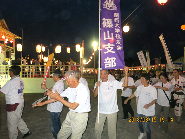 8月15日、恒例となった篠山支部(中瀬和夫支部長)のメインイベントとして、第66回丹波篠山デカンショ祭の初日に、今年も「関大連」を組んで参加した。