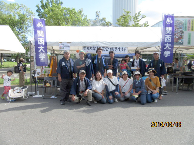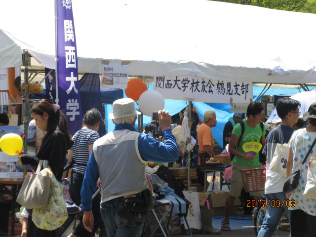 「TURUMI子供ホスピス」のコーナーや、室本幹事(H13商)のつるみママ会とも連携を図りながら、たくさんの校友等が訪れてくれました。若い子連れ夫婦「私ら2人とも関大やで」。また、関大の幟を見て、「わしも関大やで」。OB・OG、在学生、親等々・・・、鶴見支部のリーフレットや、機関誌関大等を渡し、連絡先も記入してもらい、今度の鶴見支部交流会での再会をお願いし、様々な出会いで、ブースはいつもにぎやかでした。