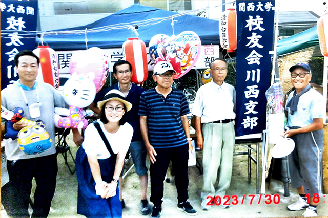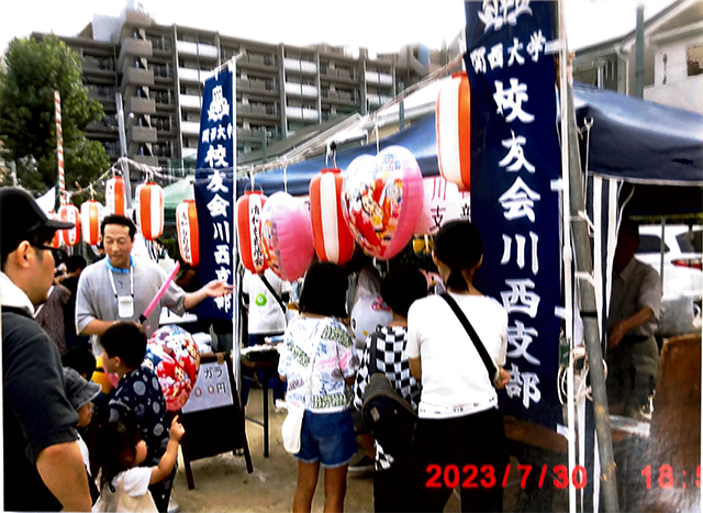 抽選箱を廻し、出てきた玉の色の違いで景品を渡す、というものである。これでお客さんが来てくれるのかとの心配もあったが、これが大当たり。子どもたちを中心にその親たちも来店。用意した景品がすべて販売完了となり、SOLD OUT。大学の名前を冠した「のぼり」も立てたところ地元の校友が来店、早速校友会の話をしたところ、数名の新入会員が生まれた。また今回の納涼祭出店では新しい校友の活躍がみられ、女子会の参加もあった。出店の準備に何かと苦労があったが多くの校友や関係者の協力もあり、成功裏の納涼祭であった。
