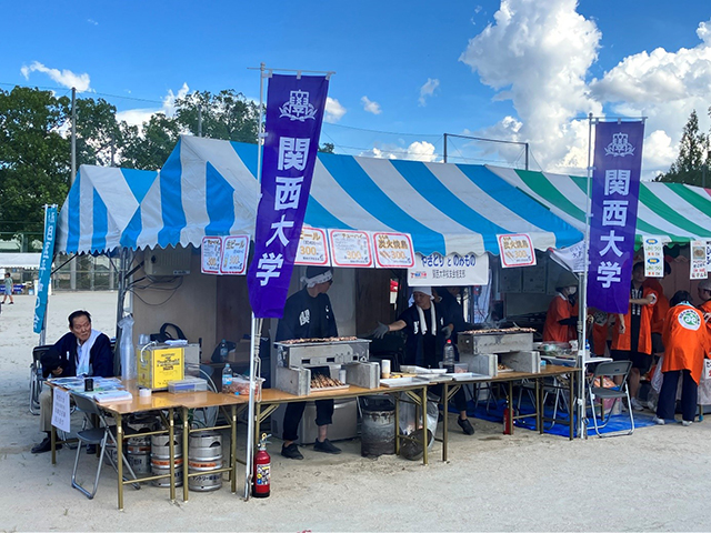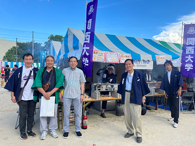 コロナがあけるのを待ちわびたのか、区民まつりの参加者が過去に比べて大変多く、関大の幟を見て、訪れてくれる校友も多数おられました。機関誌「関大」などをお渡しし、連絡先などを記入していただきました。