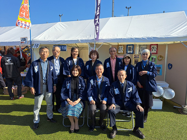 校友会守口支部(川部政彦支部長)では、コロナ禍で3年振りにテントブースを出店し、支部会員の奥原高子司法書士と伊藤榮保総合事務所長がボランティアで無料相談を行うと共に、高くのぼりを掲げ、冊子で大学を、校友会活動写真報告で校友会を、各PRすることができました。