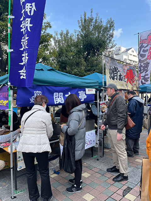 伊丹支部「冬の元気まつり」に出店参加 2024.02.11 2月11日(日)伊丹三軒寺前広場(伊丹市中央2)において開催されました「冬の元気まつり」に校友会伊丹支部として出店いたしました。 昨年に引き続き「関大亭」という屋号で、焼きそばと地元の日本酒を販売いたしました。 食材は昨年の倍ほども用意したのですが、追加仕入れに走るほどの売れ行きでした。 来年以降も地域のイベントには協力させてもらいたいと思っています。 (広報部長 丸山幸夫 昭59商卒)