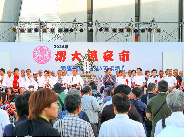 堺支部2024年「堺大魚夜市」に出展 2024.07.27 7/27(土)大浜公園 市民広場および中央広場の一部で2024年「堺大魚夜市」が開催された。 堺支部は人間健康学部の安田ゼミの学生さんと協働し、「射的ゲーム」を実施した。 夕方から途切れなく来場があり、300余名の方がゲームを楽しんだ。 大魚夜市のセレモニー終了後、ブースには永藤堺市長、葛村堺商工会議所会頭(堺支部副支部長)の訪問を受けた。 市長に、地元と連携しながら出店していることを伝えると、謝辞を得た。