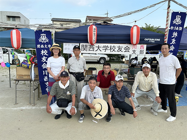 川西支部市内の清和台コミュニティ納涼祭に出店する 2024.08.03 川西支部は令和6年8月3日、社会連携活動の一環として納涼祭に出店した。 昨年より「ガラガラ抽選会」と称し子ども用の玩具を販売しているが、今年は約300名の子ども・親たちの来店で大いに盛り上がり、大学の名前も大きく知れ渡った。
