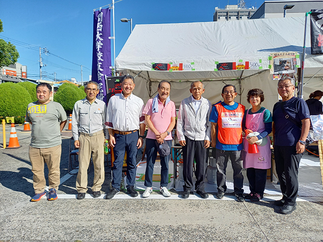 さらに、ブースの横には支部の幟を高く掲げ、機関誌「関大」を展示して、大学や校友会の活動を広報した。この機会に多くの尼崎市民に関西大学および関西大学校友会尼崎支部の存在をPRすることができた。