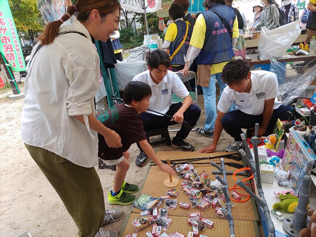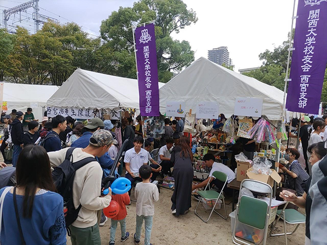 令和6年10月26日(土曜日)11時から16時00分まで「にしのみや市民祭り」においてブース出店をし、「関西大学」のノボリをはためかせながら、輪投げを行い、キャラメルポップコーンを提供して、子ども連れの市民を中心に多くの人々に大いに楽しんでもらい、地域社会を盛り上げる一助となるとともに関西大学の存在を示しました。