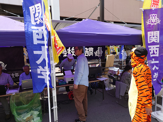 東大阪支部東大阪市民ふれあい祭りに出店 2025.05.11 5月11日(日)に開催された、「東大阪市民ふれあい祭り」にて無料姓名判断を実施した。当日、占った人数は約700人となり、東大阪支部会員12人のスタッフが対応に当たった。関西大学の幟3枚をテントに張り付け関西大学の認知度を向上させた。