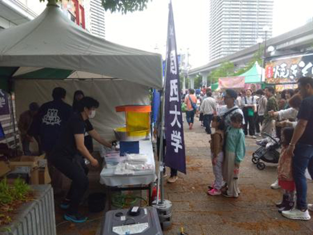 関西大学校友会から頂戴いたしました社会連携活動助成費のおかげで、10年前より始めた綿菓子を今年も継続し、従来以上に多くの子どもたちや、沢山の参加者の方とふれあいを持つことが出来ました。