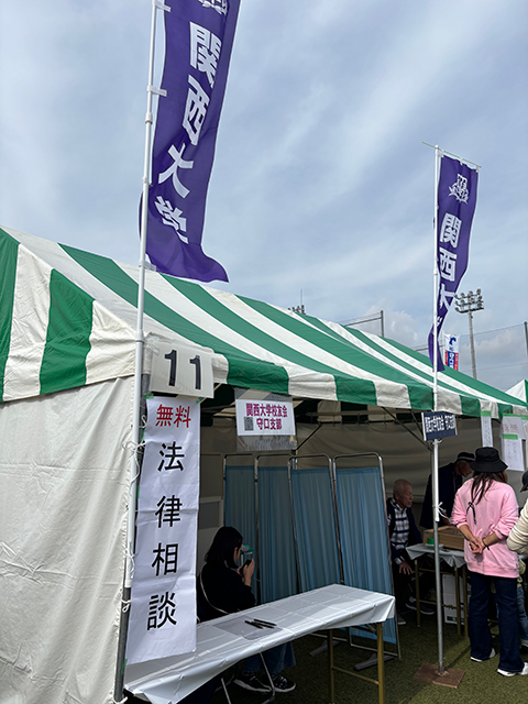 校友会守口支部(北町収支部長)は関大ブースを設けて支部会員の奥原高子司法書士によるボランティア無料法律相談所を開設しました。法律相談は、相続などの身近な問題を相談に来られた方からは、心易く相談することができると好評でした。